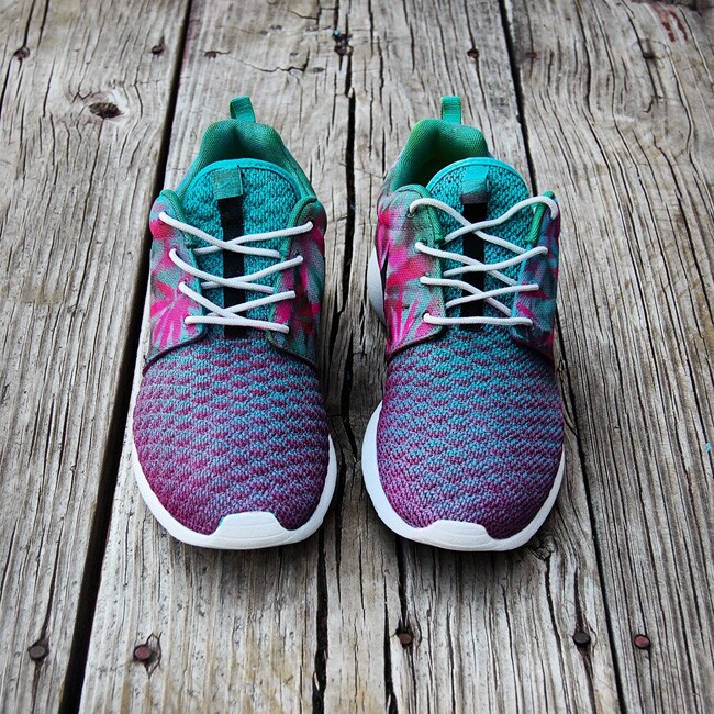 This custom is a late addition to the “Premium Kush” Pack that was just launched. The base shoe remains the same, a Premium Nike Roshe Run and the overall “420” theme is cross pollinated with a South Beach feel. The result is this “Kush on the Beach” masterpiece.