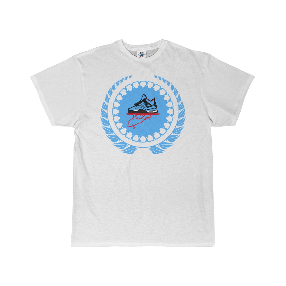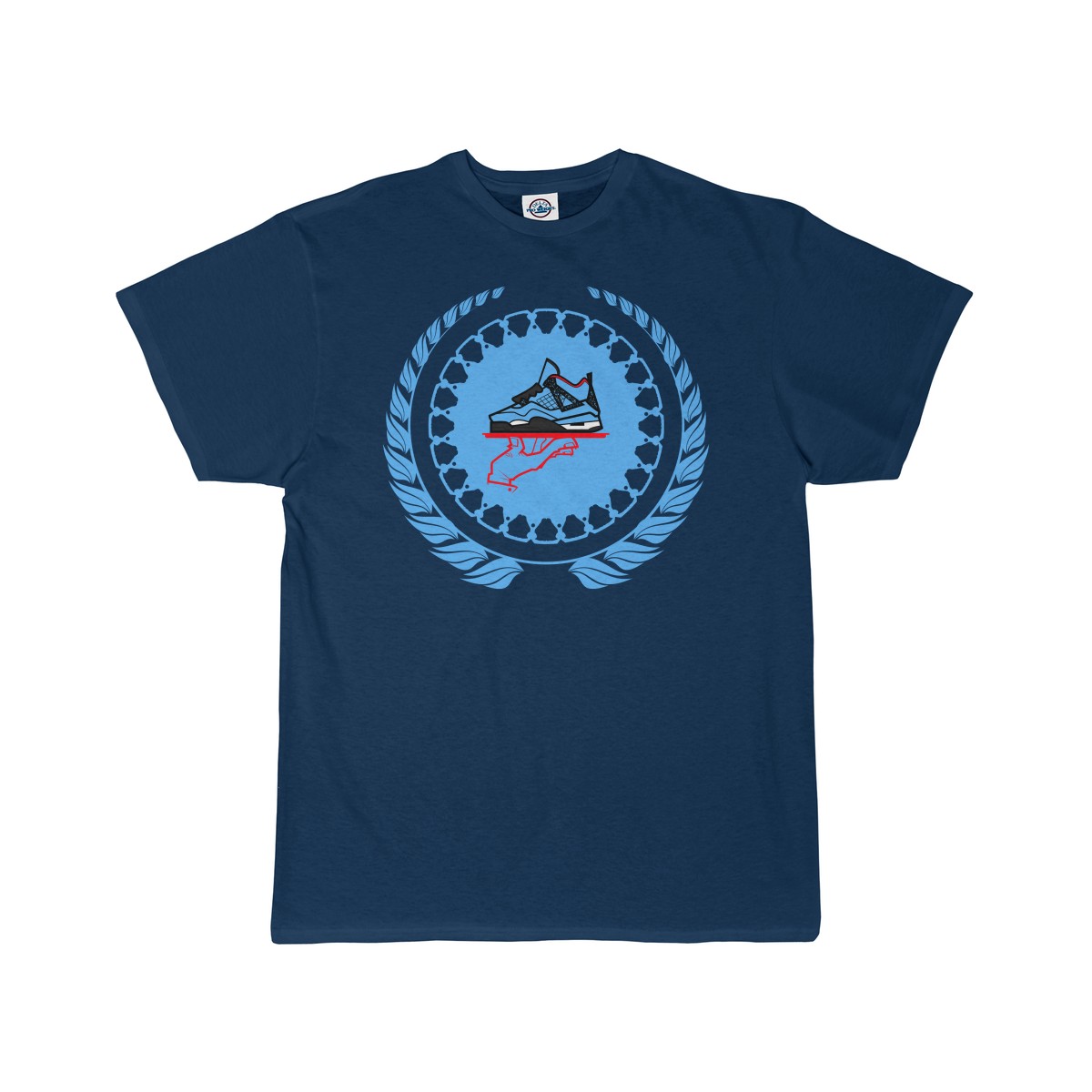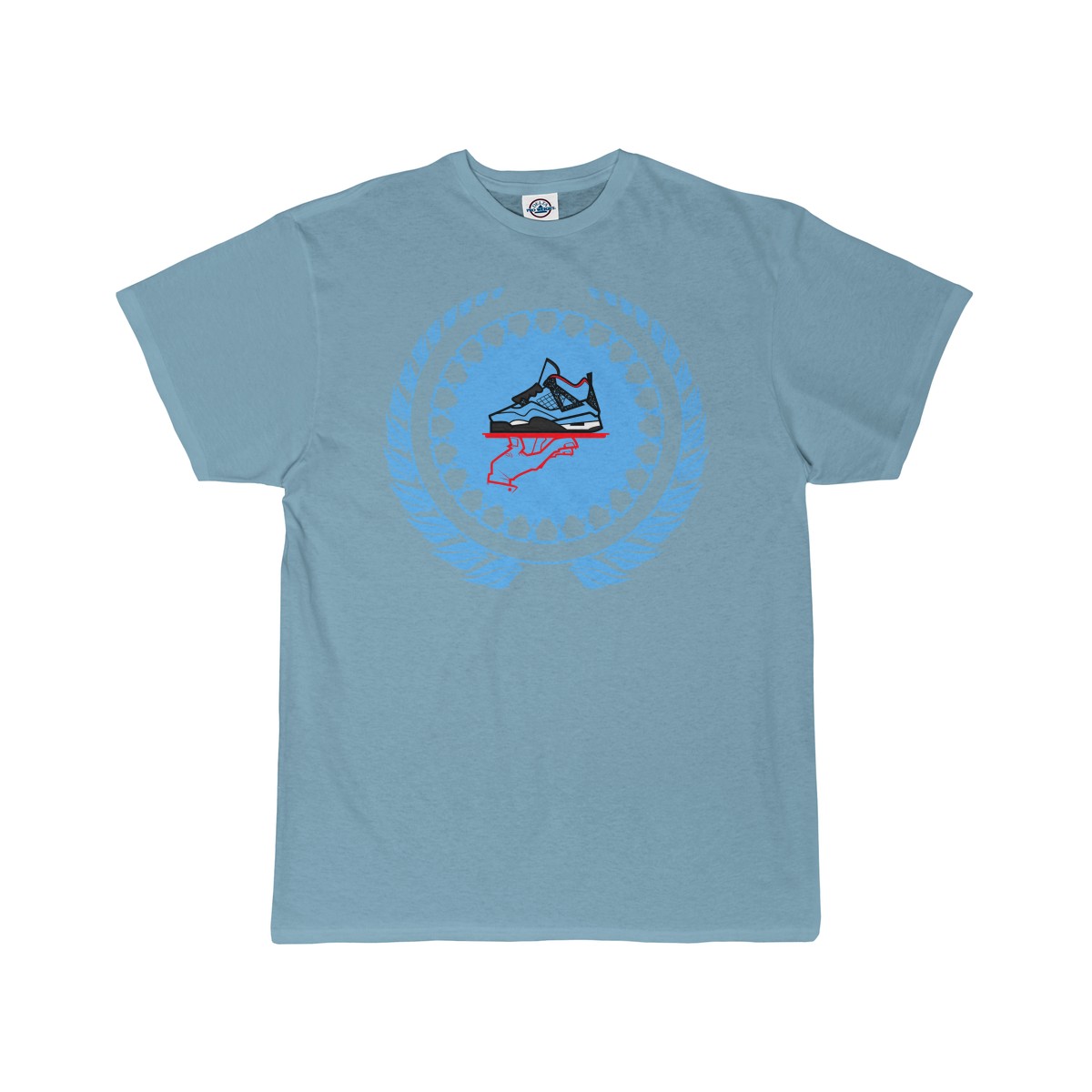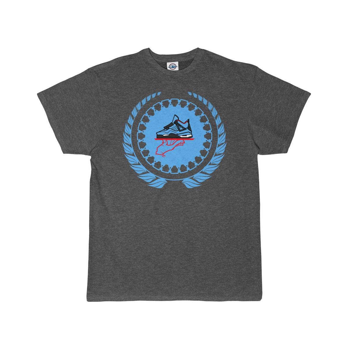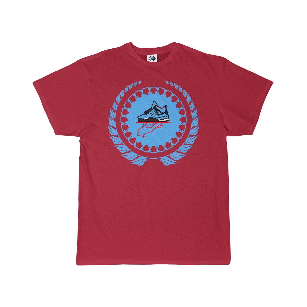 Sneaker ColorwayMatch t-shirt for the Jordan 4 Cactus Jack. Simple flourish style jumbo GourmetKickz logo.