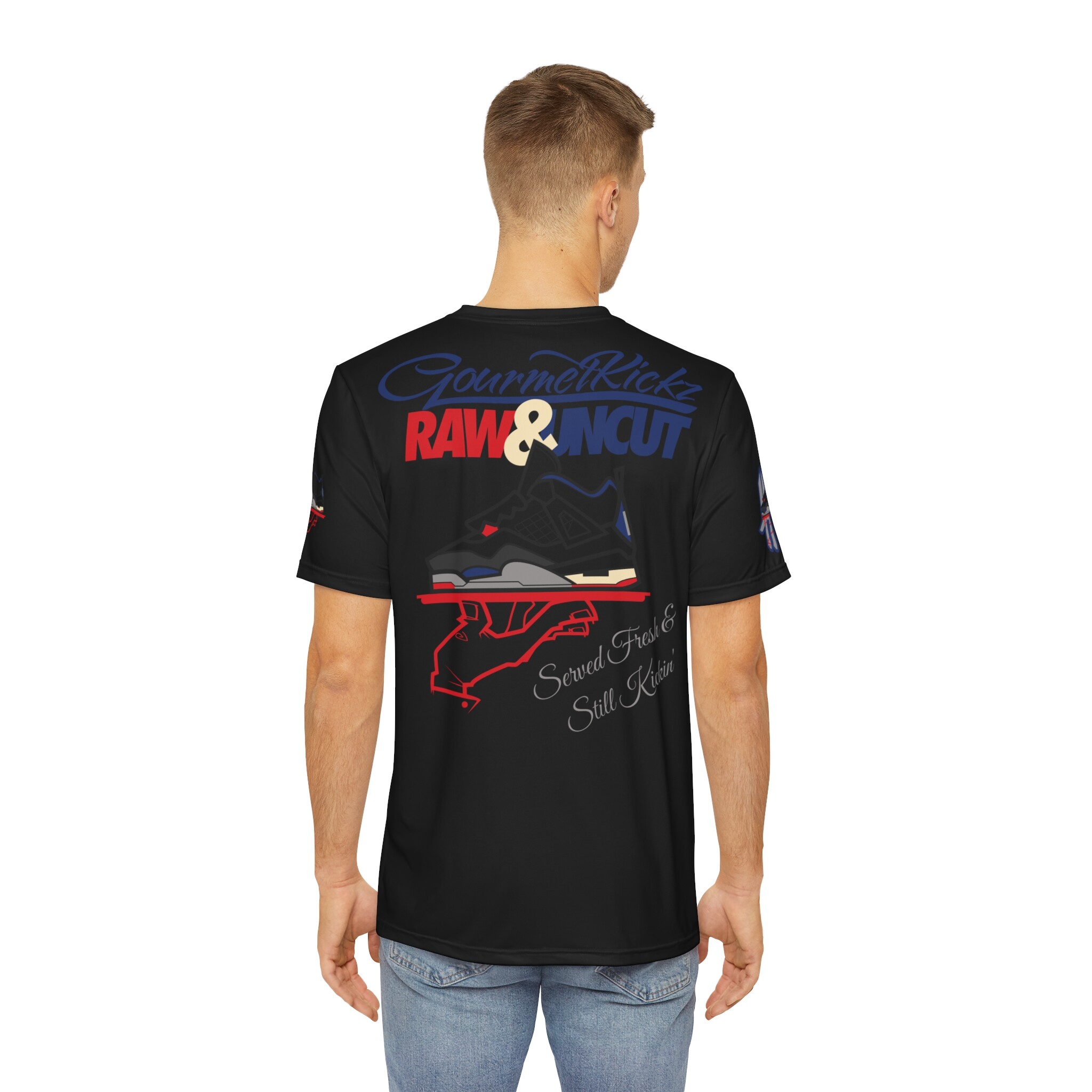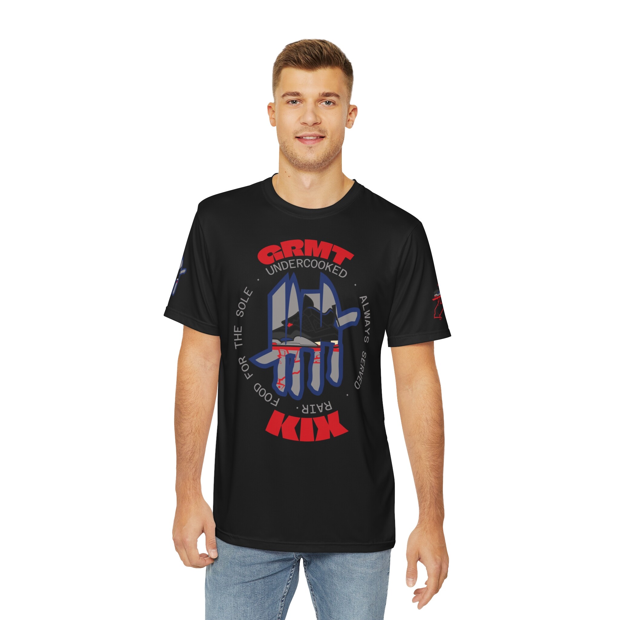 Chef designed this Sneaker ColorwayMatch t-shirt to match Jordan 4 Rare Airs colorway kicks. GourmetKickz’ carefully selected USA based factory made this shirt from 100% polyester. Therefore it has moisture wicking properties and a luxurious feel. The fabric weight is 5oz which is similar in thickness to heavy cotton t-shirts. This new design from Chef features a newly released “Undercooked” logo and some brand appropriate slogans. This “What The” design is perfect to match the Jordan 4 Rare Air.