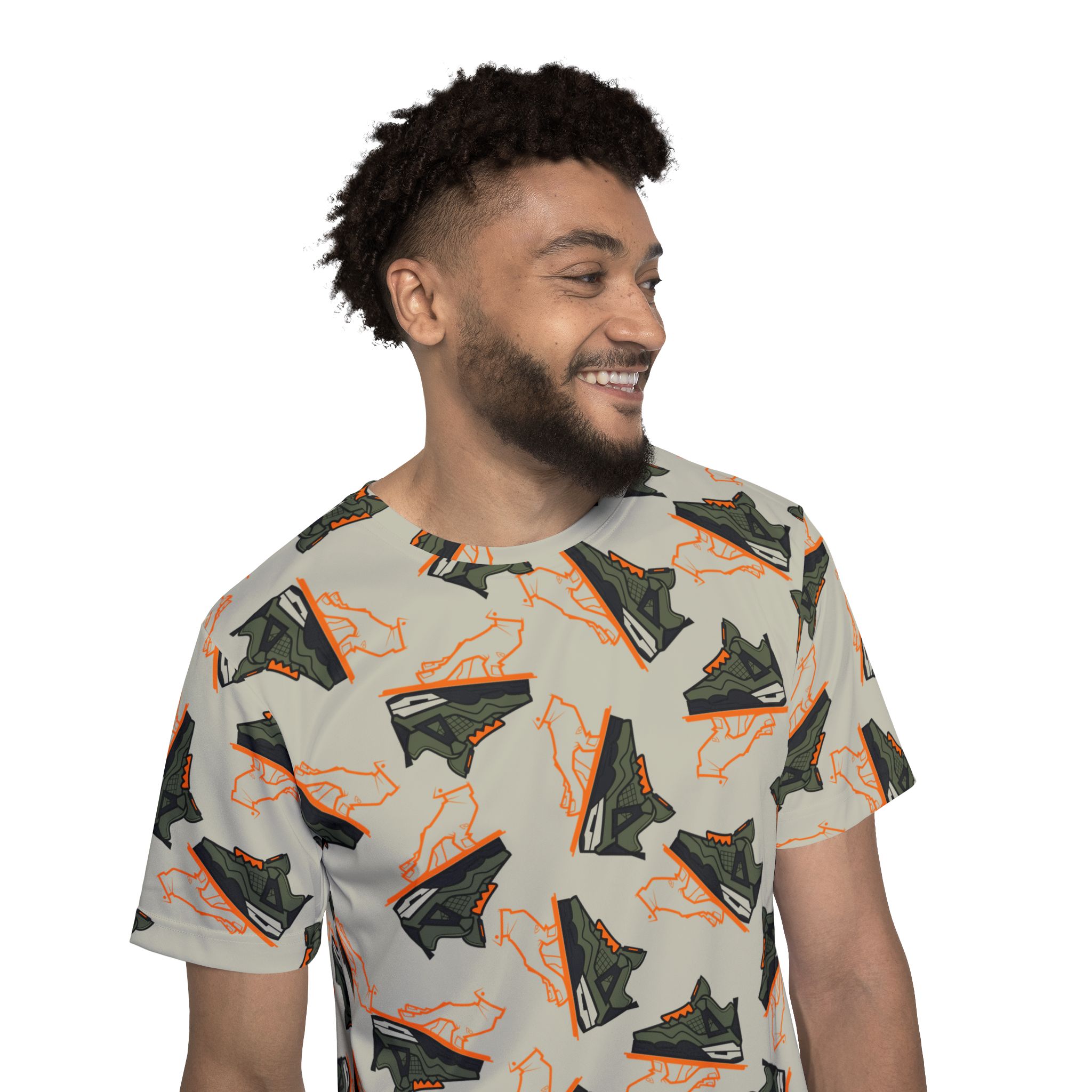 Chef of GourmetKickz designed these shirts to match the sneakers mentioned above by using a color matching system that relies on a BEST MATCH POSSIBLE schema. If Chef is unable to find an exact match to the color of the sneaker for dye sublimation printers, he will use a complimentary color or related color hue or shade will be used. GourmetKickz uses color harmonies to create colorways that work well with the sneakers you are matching which is why GourmetKickz rank among the best in the world to match sneaker colorways.
